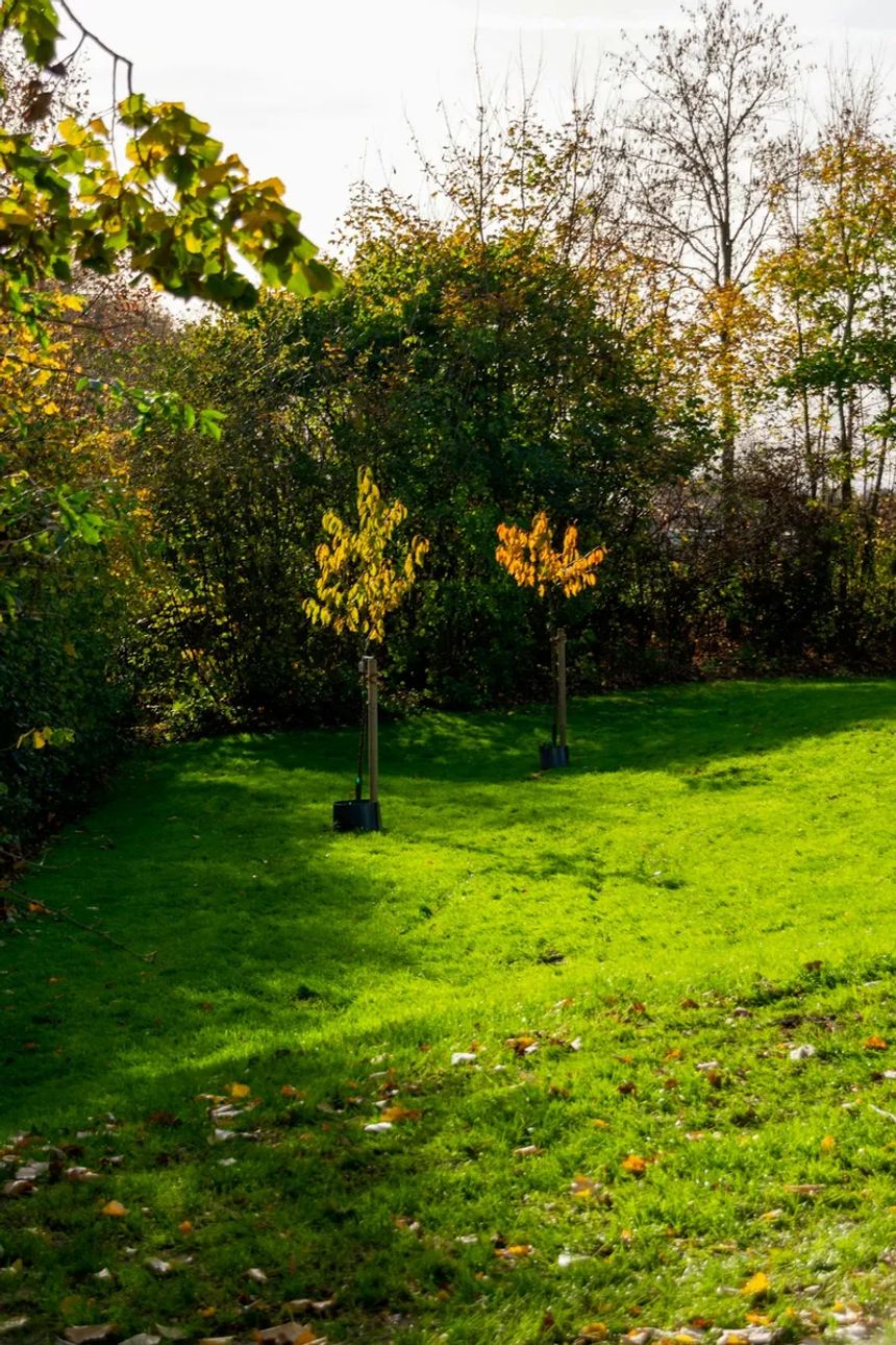 Den første sommeren er jevn vanning avgjørende. Gi treet en skikkelig omgang vann minst en gang i uken, spesielt i tørre perioder. Husk at eple- og pæretrær trenger tre til fem meter avstand, kirsebær fire til seks meter, og plommetrær tre til fire meter mellom hvert tre.